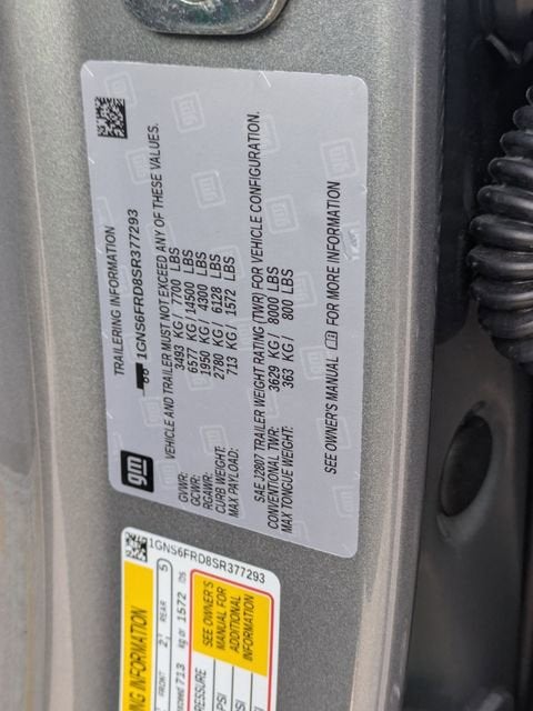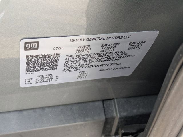 Sterling Gray Metallic 2025 Chevrolet Suburban Premier 4WD 10-Speed Automatic with Overdrive EcoTec3 5.3L V8 2-Speed Active Electronic AutoTrac Transfer Case, 20 x 9 Polished Aluminum Wheels, 3rd Row 60/40 Power-Folding Split-Bench, 4-Way Power Driver Lumbar Seat Adjuster, 4-Way Power Front Passenger Lumbar Seat Adjuster, 8-Way Power Front Passenger Seat Adjuster, Advanced Trailering Package, Auto-Dimming Inside Rear-View Mirror, Blind Zone Steering Assist with Trailering, Bose 10-Speaker Surround with CenterPoint, Bright Front and Rear Door Sill Plates, Chrome Door Handles with Body-Color Strip, Chrome Mirror Caps, Dual Exhaust System, Dual-Pane Power Panoramic Sunroof, Front LED Fog Lamps, Heated 2nd Row Outboard Seats, Heated Driver and Front Passenger Seats, Heated Power-Adjustable Outside Mirrors, Heated Steering Wheel, Hill Descent Control, Hitch View with Pan/Zoom Image Adjustment, Integrated Trailer Brake Controller, LED Headlamps with LED Daytime Running Lamps, LED Tail Lamps, Magnetic Ride Control Suspension, Max Trailering Package, Memory Settings, Navigation system: Google built-in compatibility (select service plan required, terms and limitations apply), Perforated Heated and Ventilated Seats, Power Release 2nd Row Bucket Seats, Power Tilt and Telescopic Steering Column, Power-Sliding Center Floor Console, Preferred Equipment Group 1LZ, Rear Power Liftgate, Smart Trailer Integration Indicator, Sun and Tow Package, Universal Home Remote, Wireless Phone Charging, 10 Speakers, 3.23 Rear Axle Ratio, 3rd row seats: split-bench, 4-Wheel Disc Brakes, 8-Way Power Driver Seat Adjuster, ABS brakes, Adaptive suspension, Air Conditioning, Alloy wheels, AM/FM radio: SiriusXM with 360L, Apple CarPlay/Android Auto, Auto High-beam Headlights, Auto-dimming door mirrors, Auto-dimming Rear-View mirror, Auto-leveling suspension, Automatic temperature control, Brake assist, Bumpers: body-color, Compass, Delay-off headlights, Driver door bin, Driver vanity mirror, Dual front impact airbags, Dual front side impact airbags, Electronic Stability Control, Emergency communication system: OnStar Services capable, Exterior Parking Camera Rear, Extra Capacity Cooling System, Four wheel independent suspension, Front anti-roll bar, Front Bucket Seats, Front Center Armrest, Front dual zone A/C, Front fog lights, Front reading lights, Fully automatic headlights, Garage door transmitter, Heated door mirrors, Heated front seats, Heated rear seats, Heated steering wheel, Illuminated entry, Low tire pressure warning, Memory seat, Occupant sensing airbag, Outside temperature display, Overhead airbag, Overhead console, Panic alarm, Passenger door bin, Passenger vanity mirror, Perforated Leather Seating Surfaces, Power door mirrors, Power driver seat, Power Liftgate, Power passenger seat, Power steering, Power windows, Radio data system, Radio: 17.7 Diagonal Advanced Color LCD Display, Rain sensing wipers, Rear air conditioning, Rear anti-roll bar, Rear reading lights, Rear window defroster, Rear window wiper, Remote keyless entry, Security system, SiriusXM with 360L Trial Subscription, Speed control, Speed-sensing steering, Split folding rear seat, Spoiler, Steering wheel memory, Steering wheel mounted audio controls, Tachometer, Telescoping steering wheel, Tilt steering wheel, Traction control, Trip computer, Turn signal indicator mirrors, Variably intermittent wipers, Ventilated front seats, Voltmeter, Wheel Locks (set of 4), Wheels: 22 x 9 Manoogian Silver Painted Aluminum, Wireless Apple CarPlay/Wireless Android Auto, 2-Speed Active Electronic AutoTrac Transfer Case, 20 x 9 Polished Aluminum Wheels, 3rd Row 60/40 Power-Folding Split-Bench, 4-Way Power Driver Lumbar Seat Adjuster, 4-Way Power Front Passenger Lumbar Seat Adjuster, 8-Way Power Front Passenger Seat Adjuster, Advanced Trailering Package, Auto-Dimming Inside Rear-View Mirror, Blind Zone Steering Assist with Trailering, Bose 10-Speaker Surr