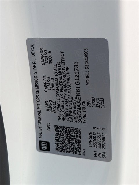 $5,000 off MSRP! Priced below KBB Fair Purchase Price! 18/21 City/Highway MPG 8-Speed Automatic, Jet Black Vinyl, 3.5 Monochromatic Display Driver Info Center, 4-Way Manual Driver Seat Adjuster, Black (Semi-Gloss) Front Bumper, Black (Semi-Gloss) Rear Bumper, Bluetooth® For Phone, Deep-Tinted Glass, Electric Rear-Window Defogger, Electronic Cruise Control, Front Frame-Mounted Black Recovery Hooks, HD Rear Vision Camera, Heated Power-Adjustable Outside Mirrors, Hitch Guidance, Locking Tailgate, Manual Tilt Wheel Steering Column, OnStar Services Capable, Preferred Equipment Group 1WT, Remote Keyless Entry, Rubberized-Vinyl Floor Covering, SiriusXM Delete, Solar Absorbing Tinted Glass, Standard Suspension Package, Standard Tailgate, Teen Driver, Tire Pressure Monitoring System, Trailering Package, Wi-Fi Hot Spot Capable, WT Convenience Package, WT Value Package, 120-Volt Bed Mounted Power Outlet, 120-Volt Interior Power Outlet, 2 Speakers, 2-Speaker Audio System, 220 Amp Alternator, 3.42 Rear Axle Ratio, 4-Wheel Disc Brakes, 40/20/40 Front Split Bench Seat, ABS brakes, Air Conditioning, Apple CarPlay/Android Auto, Auto High-beam Headlights, Auto-Locking Rear Differential, Automatic Emergency Braking, Brake assist, Compass, Delay-off headlights, Deleted Mobile Service Plus, Driver door bin, Dual front impact airbags, Dual front side impact airbags, Electronic Stability Control, Emergency communication system: OnStar, Following Distance Indicator, Forward Collision Alert, Front anti-roll bar, Front Center Armrest w/Storage, Front Pedestrian Braking, Front reading lights, Front wheel independent suspension, Fully automatic headlights, Heated door mirrors, Illuminated entry, Low tire pressure warning, Occupant sensing airbag, Outside temperature display, Overhead airbag, Overhead console, Panic alarm, Passenger door bin, Passenger vanity mirror, Power door mirrors, Power steering, Power windows, Premium audio system: Chevrolet Infotainment 3, Radio data system, Radio: Chevrolet Infotainment 3 System, Rear reading lights, Rear step bumper, Remote keyless entry, Speed control, Speed-sensing steering, Tachometer, Tilt steering wheel, Traction control, Trip computer, Variably intermittent wipers, Vinyl Seat Trim, Voltmeter, Wheels: 17 x 8 Ultra Silver Painted Steel, 8-Speed Automatic, Jet Black Vinyl, 3.5 Monochromatic Display Driver Info Center, 4-Way Manual Driver Seat Adjuster, Black (Semi-Gloss) Front Bumper, Black (Semi-Gloss) Rear Bumper, Bluetooth® For Phone, Deep-Tinted Glass, Electric Rear-Window Defogger, Electronic Cruise Control, Front Frame-Mounted Black Recovery Hooks, HD Rear Vision Camera, Heated Power-Adjustable Outside Mirrors, Hitch Guidance, Locking Tailgate, Manual Tilt Wheel Steering Column, OnStar Services Capable, Preferred Equipment Group 1WT, Remote Keyless Entry, Rubberized-Vinyl Floor Covering, SiriusXM Delete, Solar Absorbing Tinted Glass, Standard Suspension Package, Standard Tailgate, Teen Driver, Tire Pressure Monitoring System, Trailering Package, Wi-Fi Hot Spot Capable, WT Convenience Package, WT Value Package.