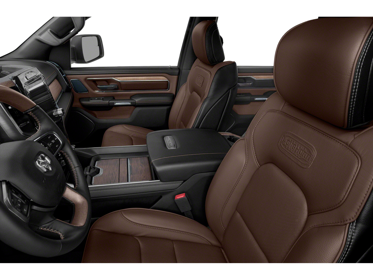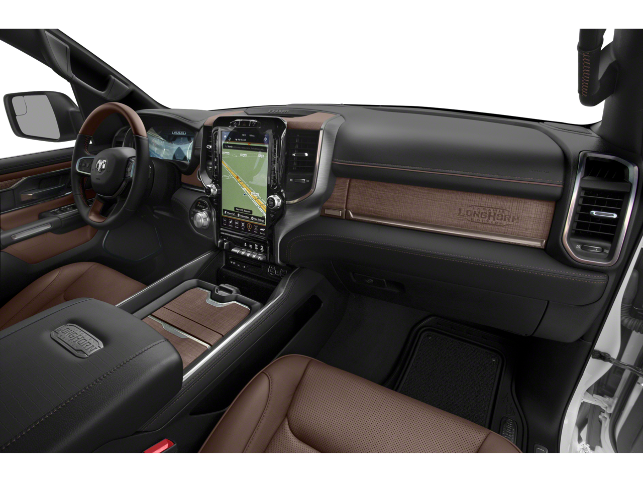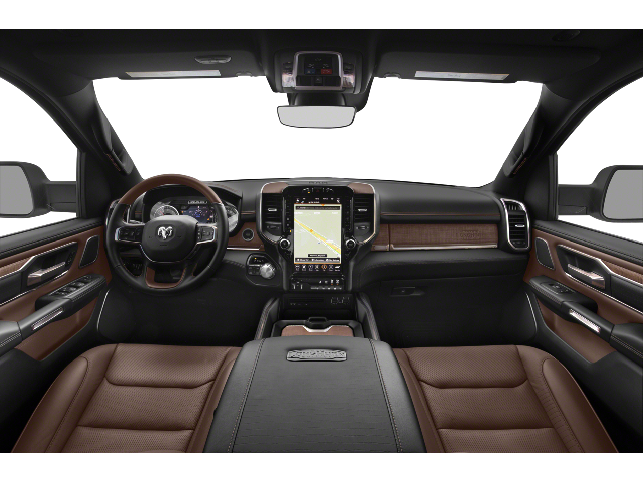Well equipped with: Advanced Safety Group, Body Color Bumper Group, Longhorn Level 1 Equipment Group (1-Yr SiriusXM Guardian Trial, 12 Touchscreen Display, Apple CarPlay, Disassociated Touchscreen Display, Google Android Auto, GPS Antenna Input, GPS Navigation, HD Radio, Integrated Center Stack Radio, No Satellite Coverage w/HI/AK/PR/VI/GU, Radio: Uconnect 12 w/Navigation, SiriusXM Satellite Radio, SiriusXM Traffic Plus, SiriusXM Travel Link, and SiriusXM w/360L), Quick Order Package 27K Longhorn, #1 Seat Foam Cushion, 10 Speakers, 3 Rear Seat Head Restraints, 3.21 Rear Axle Ratio, 4 Way Front Headrests, 4-Wheel Disc Brakes, 48V Belt Starter Generator, ABS brakes, Adjustable pedals, Air Conditioning, Alloy wheels, AM/FM radio: SiriusXM, Anti-Spin Differential Rear Axle, Apple CarPlay/Android Auto, Audio memory, Auto High-beam Headlights, Auto-dimming door mirrors, Auto-dimming Rear-View mirror, Automatic temperature control, Brake assist, Bucket Seats, Bumpers: chrome, Compass, Delay-off headlights, Dome Dual LED Reading Lamp, Driver door bin, Driver Seat Memory, Driver vanity mirror, Dual front impact airbags, Dual front side impact airbags, Dual-Pane Panoramic Sunroof, Electronic Stability Control, Emergency communication system: SiriusXM Guardian, Front anti-roll bar, Front Bucket Seats, Front Center Armrest w/Storage, Front dual zone A/C, Front fog lights, Front reading lights, Front Seat Back Map Pockets, Front wheel independent suspension, Fully automatic headlights, Garage door transmitter, Genuine wood console insert, Genuine wood dashboard insert, Genuine wood door panel insert, Heated door mirrors, Heated Front Seats, Heated front seats, Heated rear seats, Heated Second Row Seats, Heated Steering Wheel, Heated steering wheel, Illuminated entry, Leather steering wheel, LED Dome/Reading Lamp, Low tire pressure warning, Memory seat, Navigation System, Occupant sensing airbag, Outside temperature display, Overhead airbag, Overhead console, Panic alarm, ParkView Rear Back-Up Camera, Passenger door bin, Passenger vanity mirror, Pedal memory, Power 4-Way Driver Lumbar Adjust, Power 4-Way Passenger Lumbar Adjust, Power 8-Way Driver & Passenger Seats, Power door mirrors, Power driver seat, Power passenger seat, Power steering, Power windows, Premium Leather Seats w/Filigree, Radio data system, Radio: Uconnect 4C Nav w/8.4 Display, Rain sensing wipers, Rear 60/40 Folding Split Recline Seat, Rear anti-roll bar, Rear seat center armrest, Rear step bumper, Rear window defroster, Remote CD player, Remote keyless entry, Security system, Speed control, Split folding rear seat, Steering wheel mounted audio controls, Tachometer, Telescoping steering wheel, Tilt steering wheel, Traction control, Trip computer, Turn signal indicator mirrors, Variably intermittent wipers, Ventilated Front Seats, Ventilated front seats, Voltmeter, Wheels: 20 x 9 Aluminum Painted/Polished, and Wheels: 22 x 9 Polish/Painted w/Inserts.