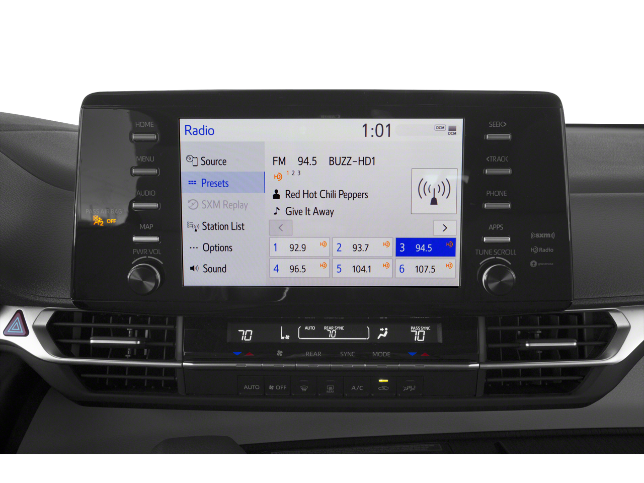 - Radio: Audio -inc: 6 speakers, 9" touchscreen, Android Auto, Apple CarPlay, Amazon Alexa compatibility, USB media port, 6 USB charge ports, hands-free phone capability and music streaming via Bluetooth® wireless technology, SiriusXM w/3-month All Access trial, Safety Connect w/1-year trial, Wi-Fi Connect w/up to 2 GB within 3-month trial and Service Connect w/10-year trial See toyota.com/audio-multimedia for details. See toyota.com/connect-services for details.