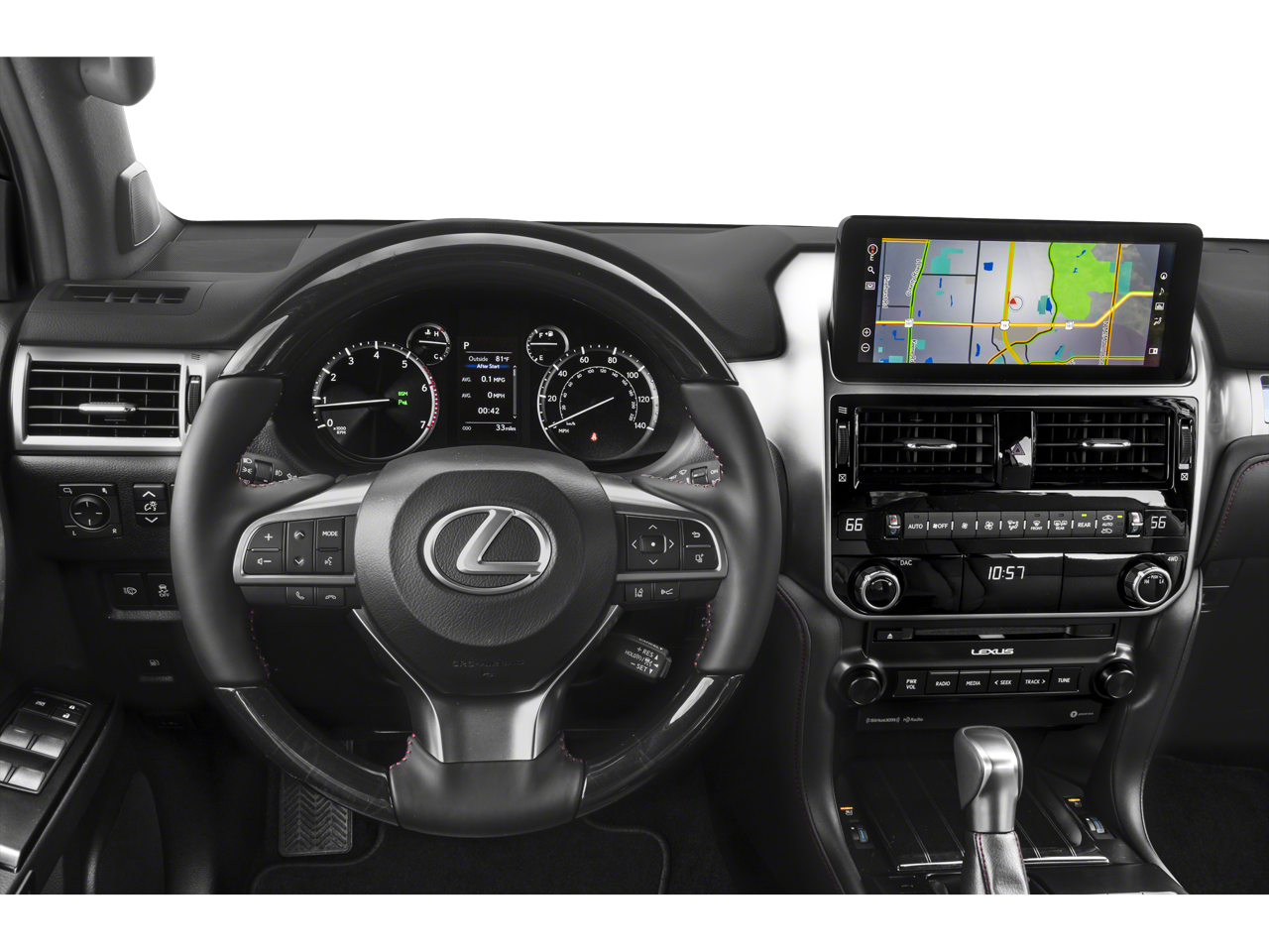 Well equipped with: 18 x 7.5J Aluminum Alloy Wheels, 3.909 Axle Ratio, 3rd row seats: split-bench, 4-Wheel Disc Brakes, 9 Speakers, ABS brakes, Air Conditioning, Alloy wheels, AM/FM radio: SiriusXM, Anti-whiplash front head restraints, Apple CarPlay/Android Auto, Auto High-beam Headlights, Auto tilt-away steering wheel, Auto-dimming Rear-View mirror, Automatic temperature control, Brake assist, Bumpers: body-color, CD player, Compass, Delay-off headlights, Driver door bin, Driver vanity mirror, Driver's Seat Mounted Armrest, Dual front impact airbags, Dual front side impact airbags, Electronic Stability Control, Emergency communication system, Exterior Parking Camera Rear, Front anti-roll bar, Front Bucket Seats, Front dual zone A/C, Front reading lights, Front wheel independent suspension, Fully automatic headlights, Garage door transmitter: HomeLink, Heated door mirrors, Illuminated entry, Illuminated running boards, Knee airbag, Leather Shift Knob, Leather steering wheel, Low tire pressure warning, Memory seat, Navigation System, NuLuxe Synthetic Leather Seat Trim, Occupant sensing airbag, Outside temperature display, Overhead airbag, Overhead console, Panic alarm, Passenger door bin, Passenger seat mounted armrest, Passenger vanity mirror, Power door mirrors, Power driver seat, Power moonroof, Power passenger seat, Power steering, Power windows, Radio data system, Radio: Lexus Multimedia System, Rear anti-roll bar, Rear reading lights, Rear seat center armrest, Rear side impact airbag, Rear window defroster, Rear window wiper, Remote keyless entry, Roof rack: rails only, Security system, Speed control, Speed-sensing steering, Split folding rear seat, Spoiler, Steering wheel memory, Steering wheel mounted audio controls, Tachometer, Telescoping steering wheel, Tilt steering wheel, Traction control, Trip computer, Turn signal indicator mirrors, and Variably intermittent wipers.