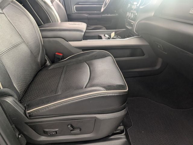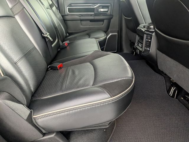Well equipped with: Laramie Level B Equipment Group (DISC) (17 Speaker harman kardon Premium Sound, 2nd Row In Floor Storage Bins, 4G LTE Wi-Fi Hot Spot, 8.4 Touchscreen Display, Alexa Built-In, All R1 High Radios, All Radio Equipped Vehicles, Apple CarPlay, Auto High Beam Headlamp Control, Chrome Exterior Mirrors, Connected Travel & Traffic Services, Connectivity - US/Canada, Disassociated Touchscreen Display, Exterior Mirrors Courtesy Lamps, Exterior Mirrors w/Heating Element, Exterior Mirrors w/Memory, Exterior Mirrors w/Supplemental Signals, Foam Bottle Insert (Door Trim Panel), For Details, Visit DriveUconnect.com, For More Info, Call 800-643-2112, Global Telematics Box Module (TBM), Google Android Auto, GPS Antenna Input, GPS Navigation, HD Radio, Heated Second Row Seats, Integrated Center Stack Radio, Integrated Voice Command w/Bluetooth®, Mirror Running Lights, Mirror-Mounted Aux Reverse Lamps, Off-Road Information Pages, Power Adjustable Convex Aux Mirrors, Power Adjustable Pedals w/Memory, Power Chrome Tow Mirrors w/Convex Spotter & Memory, Power Folding Mirrors, Radio: Uconnect 5 Nav w/8.4 Display, Radio/Driver Seat/Mirrors/Pedals Memory, Rain Sensitive Windshield Wipers, Remote Tailgate Release, Selectable Tire Fill Alert, SiriusXM Radio Service, SiriusXM w/360L, and Trailer Tow Mirrors), Night Edition (Black Exterior Mirrors, Black Exterior Truck Badging, Black Headlamp Bezels, Black Interior Accents, Black Ram Head Tailgate Badge, Black Tail Lamp Bezels, Black Wheel Center Hub, Body Color Door Handles, Body Color Grille Surround, Gloss Black Grille Billets/Accents, Painted Front Bumper, Painted Rear Bumper, Power Black Tow Mirrors w/Convex Spotter & Memory, and Wheels: 20 x 8.0 Black Painted Aluminum), Quick Order Package 2HH Laramie, FCA US LLC Certified Pre-Owned Certified, 10 Speakers, 115V Auxiliary Rear Power Outlet, 2 Way Rear Headrest Seat, 220 Amp Alternator, 3.73 Axle Ratio, 4 Way Front Headrests, 4-Wheel Disc Brakes, ABS brakes, Active Noise Control System, Adjustable pedals, Air Conditioning, Alloy wheels, AM/FM radio: SiriusXM, Apple CarPlay/Android Auto, Auto-dimming Rear-View mirror, Automatic temperature control, Bluetooth® Handsfree Phone & Audio, Brake assist, Bumpers: chrome, Compass, Delay-off headlights, Driver door bin, Driver vanity mirror, Dual front impact airbags, Dual front side impact airbags, Electronic Stability Control, Electronically Controlled Throttle, Front anti-roll bar, Front Center Armrest w/Storage, Front dual zone A/C, Front fog lights, Front reading lights, Front Seat Back Map Pockets, Fully automatic headlights, Garage door transmitter, Heated door mirrors, Heated Front Seats, Heated front seats, Heated Steering Wheel, Heated steering wheel, Illuminated entry, Leather steering wheel, Leather Trim 40/20/40 Bench Seat, LED Bed Lighting, Low tire pressure warning, MOPAR Spray In Bedliner, Occupant sensing airbag, Outside temperature display, Overhead airbag, Overhead console, Painted Flat Cab-Length Side Steps, Panic alarm, ParkView Rear Back-Up Camera, Passenger door bin, Passenger vanity mirror, Power 2-Way Driver Lumbar Adjust, Power 2-Way Passenger Lumbar Adjust, Power Adjust 8-Way Driver Seat, Power Adjust 8-Way Front Passenger Seat, Power door mirrors, Power driver seat, Power passenger seat, Power steering, Power windows, Radio data system, Radio: Uconnect 5 W w/8.4 Display, Rear 60/40 Folding Seat, Rear anti-roll bar, Rear reading lights, Rear seat center armrest, Rear step bumper, Rear window defroster, Remote keyless entry, Security system, SiriusXM Satellite Radio, Speed control, Split folding rear seat, Steering wheel mounted audio controls, Tachometer, Tilt steering wheel, Tip Start, Tow Hooks, Traction control, Trip computer, Turn signal indicator mirrors, Variably intermittent wipers, Vendor Painted Cargo Box, Vendor Painted Cargo Box Tracking, Volt