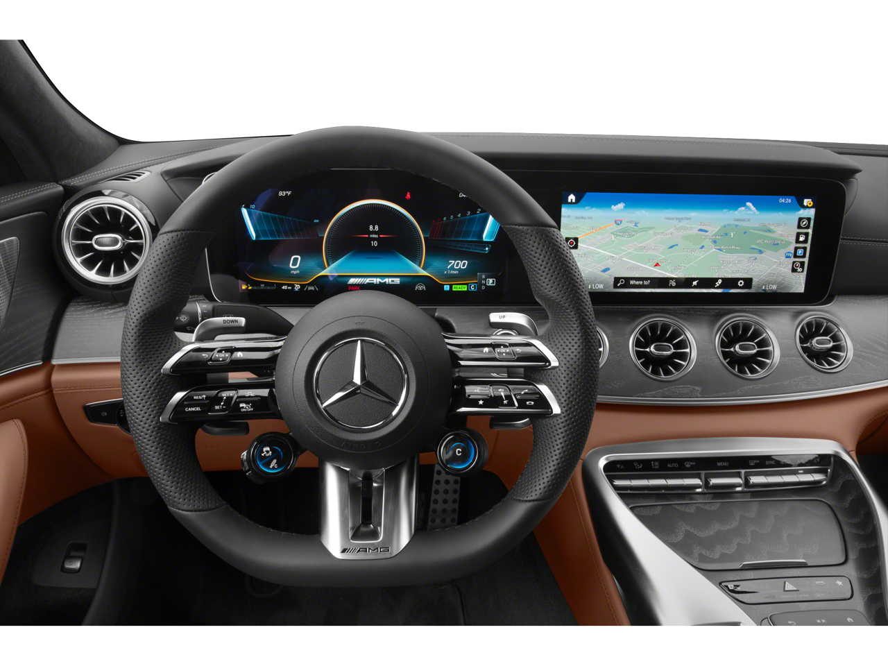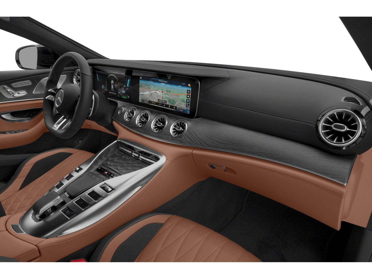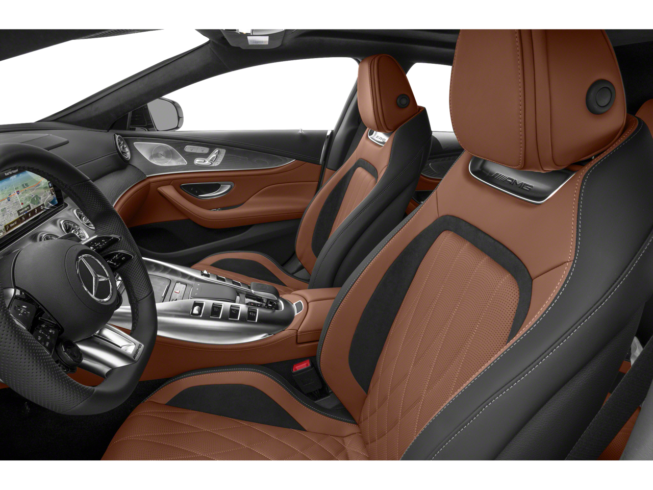 Well equipped with: 14 Speakers, 4-Wheel Disc Brakes, ABS brakes, Adaptive suspension, Air Conditioning, Alloy wheels, AM/FM radio: SiriusXM, Apple CarPlay®/Android Auto®, Auto High-beam Headlights, Auto tilt-away steering wheel, Auto-dimming door mirrors, Auto-dimming Rear-View mirror, Automatic temperature control, Brake assist, Bumpers: body-color, Burmester® Surround Sound System, Child-Seat-Sensing Airbag, Compass, Delay-off headlights, Driver door bin, Driver vanity mirror, Dual front impact airbags, Dual front side impact airbags, Electronic Stability Control, Emergency communication system, Exterior Parking Camera Rear, Four wheel independent suspension, Front anti-roll bar, Front Bucket Seats, Front Center Armrest, Front dual zone A/C, Front reading lights, Fully automatic headlights, Garage door transmitter, Head restraints memory, Heated door mirrors, Heated Front Seats, Heated front seats, Illuminated entry, Knee airbag, Leather Shift Knob, Low tire pressure warning, MB-Tex/Microfiber Upholstery, Memory seat, Navigation System, Occupant sensing airbag, Outside temperature display, Overhead airbag, Overhead console, Panic alarm, Passenger door bin, Passenger vanity mirror, Power adjustable front head restraints, Power door mirrors, Power driver seat, Power Front Bucket Seats, Power Liftgate, Power moonroof, Power passenger seat, Power steering, Power windows, Premium audio system: MBUX, Radio data system, Radio: MBUX Infotainment & Navigation System, Rain sensing wipers, Rear anti-roll bar, Rear reading lights, Rear window defroster, Remote keyless entry, Security system, Speed control, Speed-sensing steering, Speed-Sensitive Wipers, Spoiler, Sport steering wheel, Steering wheel memory, Steering wheel mounted audio controls, Tachometer, Telescoping steering wheel, Tilt steering wheel, Traction control, Trip computer, Turn signal indicator mirrors, Variably intermittent wipers, and Wheels: 9.5 x 19 Fr/11 x 19 Rr AMG® Multispoke.