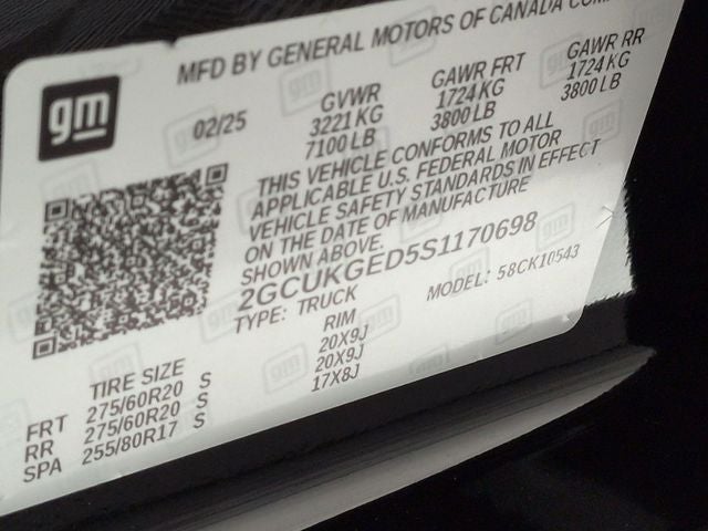 - Front Tire Size: 275/60R20SL