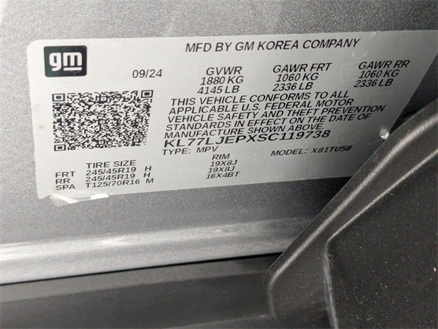 CLEAN CARFAX, ONE OWNER, BALANCE OF FACTORY WARRANTY, LIFETIME ENGINE GUARANTEE, FAST AND EASY FINANCING, THE NEW PRICE OUTLET, Adaptive Cruise Control, Driver Confidence Package, Lane Change Alert with Side Blind Zone Alert, Power Sliding Glass Sunroof with Manual Shade, Preferred Equipment Group 2RS, Rear Cross-Traffic Alert, Rear Park Assist, Sunroof Package, Wireless Charging, 2-Way Adjustable Front Head Restraints, 2-Way Power Driver Lumbar Seat Adjuster, 3.50 Final Drive Axle Ratio, 4-Way Manual Front Passenger Seat Adjuster, 4-Wheel Disc Brakes, 6 Speakers, 6-Speaker Audio System Feature, 6-Way Manual Driver Seat Adjuster, 8-Way Power Driver Seat Adjuster, ABS brakes, Air Conditioning, Alloy wheels, AM/FM radio: SiriusXM, Auto High-beam Headlights, Automatic temperature control, Brake assist, Bumpers: body-color, Compass, Delay-off headlights, Driver door bin, Driver vanity mirror, Dual front impact airbags, Dual front side impact airbags, Electronic Stability Control, Emergency communication system: OnStar One Essentials, Evotex Seat Trim, Exterior Parking Camera Rear, Front anti-roll bar, Front Bucket Seats, Front Center Armrest, Front reading lights, Front wheel independent suspension, Fully automatic headlights, Heated door mirrors, Heated Driver and Front Passenger Seats, Heated front seats, Heated steering wheel, Illuminated entry, Leather steering wheel, Low tire pressure warning, Occupant sensing airbag, Outside temperature display, Overhead airbag, Overhead console, Panic alarm, Passenger door bin, Passenger vanity mirror, Power door mirrors, Power steering, Power windows, Premium audio system: Chevrolet Infotainment 3, Radio data system, Radio: AM/FM Stereo Audio System, Rear window defroster, Rear window wiper, Remote keyless entry, Security system, SiriusXM Trial Subscription, Speed control, Split folding rear seat, Spoiler, Sport steering wheel, Steering wheel mounted audio controls, Tachometer, Telescoping steering wheel, Tilt steering wheel, Traction control, Trip computer, Variably intermittent wipers, Wheels: 19 Black-Painted Machined Aluminum, Adaptive Cruise Control, Driver Confidence Package, Lane Change Alert with Side Blind Zone Alert, Power Sliding Glass Sunroof with Manual Shade, Preferred Equipment Group 2RS, Rear Cross-Traffic Alert, Rear Park Assist, Sunroof Package, Wireless Charging. Sterling Gray Metallic 2025 Chevrolet Trax 2RS FWD 6-Speed Automatic 1.2L Ecotec Turbo DOHC DI w/VVT 28/32 City/Highway MPG 28/32 City/Highway MPG
