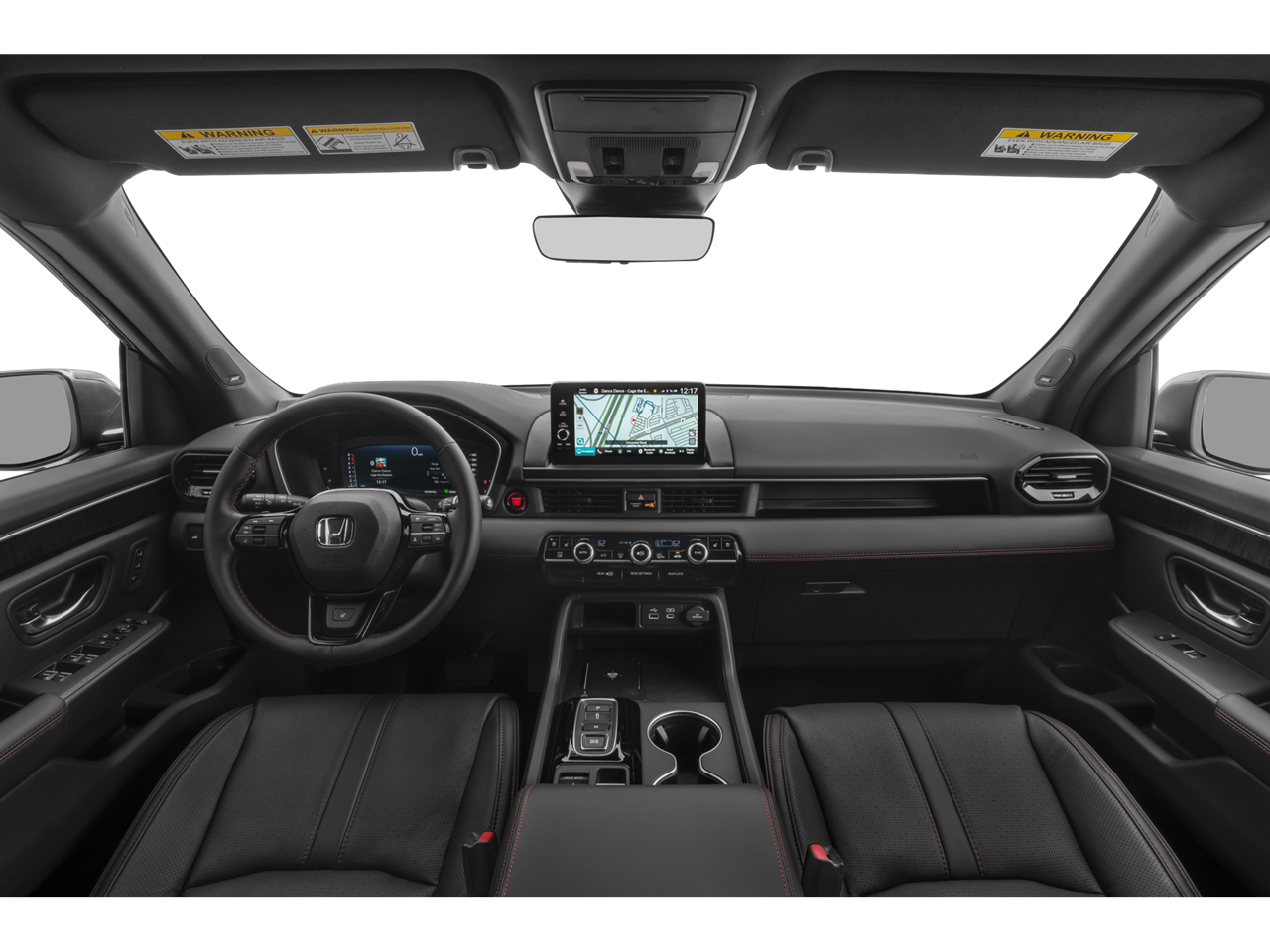 AWD, 12 Speakers, 3rd row seats: split-bench, 4-Wheel Disc Brakes, 4.167 Axle Ratio, ABS brakes, Adaptive Cruise Control: Adaptive Cruise Control (ACC) with Low-Speed Follow, Air Conditioning, Alloy wheels, AM/FM radio: SiriusXM, Apple CarPlay/Android Auto, Auto High-beam Headlights, Auto-dimming door mirrors, Auto-dimming Rear-View mirror, Automatic temperature control, Blind Spot Information (BSI) System warning, Bose Premium Sound System, Brake assist, Bumpers: body-color, Compass, Delay-off headlights, Driver door bin, Driver vanity mirror, Dual front impact airbags, Dual front side impact airbags, Electronic Stability Control, Emergency communication system: HondaLink, Exterior Parking Camera Rear, Four wheel independent suspension, Front anti-roll bar, Front Bucket Seats, Front Center Armrest, Front dual zone A/C, Front fog lights, Front reading lights, Fully automatic headlights, Garage door transmitter: HomeLink, Heads-Up Display, Heated and Ventilated Front Bucket Seats, Heated door mirrors, Heated front seats, Heated rear seats, Heated steering wheel, Honda Satellite-Linked Navigation System, HondaLink Subscription Services, Illuminated entry, Knee airbag, Lane departure: Lane Keeping Assist System (LKAS) active, Low tire pressure warning, Memory seat, Navigation system: Honda Satellite-Linked Navigation System, Occupant sensing airbag, Outside temperature display, Overhead airbag, Overhead console, Panic alarm, Passenger door bin, Passenger vanity mirror, Perforated Leather Seat Trim, Power door mirrors, Power driver seat, Power Liftgate, Power moonroof, Power passenger seat, Power steering, Power windows, Radio data system, Rain sensing wipers, Rear air conditioning, Rear anti-roll bar, Rear reading lights, Rear seat center armrest, Rear window defroster, Rear window wiper, Reclining 3rd row seat, Remote keyless entry, Security system, SiriusXM, Speed control, Speed-sensing steering, Speed-Sensitive Wipers, Split folding rear seat, Spoiler, Steering wheel mounted audio controls, Tachometer, Telescoping steering wheel, Tilt steering wheel, Traction control, Trip computer, Turn signal indicator mirrors, Variably intermittent wipers, Ventilated front seats, Wheels: 20 Gloss Black with Black Lug Nuts, AWD. Black 2025 Honda Pilot Black Edition AWD 10-Speed Automatic 3.5L V6 DOHC 24V 19/25 City/Highway MPG