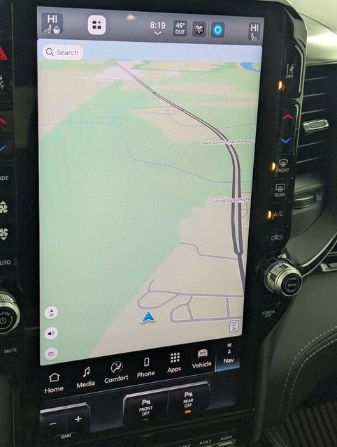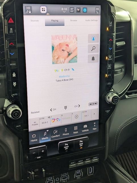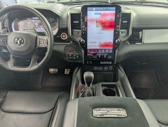 10 Speakers, 12-Way/1-Way Trailer Connector, 14.4 Touchscreen Display, 240 Amp Alternator, 3.92 Rear Axle Ratio, 4-Wheel Disc Brakes, 4G LTE Wi-Fi Hot Spot, ABS brakes, Adaptive suspension, Adjustable pedals, Air Conditioning, Alloy wheels, AM/FM radio, Apple CarPlay/Android Auto, Auto High-beam Headlights, Auto Power-Folding Mirrors, Auto-dimming door mirrors, Auto-Dimming Exterior Driver Mirror, Auto-dimming Rear-View mirror, Automatic temperature control, Brake assist, Compass, Connected Travel and Traffic Services, Connectivity - US/Canada, Delay-off headlights, Disassociated Touchscreen Display, Dome Dual LED Reading Lamp, Driver door bin, Driver Power Seat Back Massage, Driver Seat Memory, Driver vanity mirror, Driver/Passenger Wrapped Assist Handles, Drowsy Driver Detection, Dual front impact airbags, Dual front side impact airbags, Dual Wireless Charging Pad, Dual-Pane Panoramic Sunroof, Electronic Stability Control, Evasive Steer Assist, Exterior Mirrors Courtesy Lamps, Exterior Mirrors with Heating Element, Exterior Mirrors with Memory, Exterior Mirrors with Supplemental Signals, Exterior Parking Camera Rear, Flareside Box, Front anti-roll bar, Front Bucket Seats, Front Center Armrest w/Storage, Front dual zone A/C, Front fog lights, Front Passenger Interactive Display, Front Passenger Power Seat Back Massage, Front reading lights, Front wheel independent suspension, Full Length Premium Upgraded Floor Console, Fully automatic headlights, Garage door transmitter, GPS Navigation, Hands-Free Active Driving Assist System, Harman/Kardon 19 Speaker Premium Sound, HD Radio, Heads-Up Display, Heated door mirrors, Heated front seats, Heated Second Row Seats, Heated steering wheel, Illuminated entry, Integrated Center Stack Radio, Integrated Voice Command with Bluetooth®, Intersection Collision Assist System, Leather Shift Knob, Leather steering wheel, Leather Trimmed Bucket Seats, Leather/Carbon Flat-Bottom Steering Wheel, LED CHMSL Lamp, Low tire pressure warning, Luxury Front Door Trim Panel, Navigation System, Occupant sensing airbag, Outside temperature display, Overhead airbag, Overhead console, Panic alarm, Passenger door bin, Passenger vanity mirror, Power Adjustable Pedals with Memory, Power door mirrors, Power driver seat, Power passenger seat, Power steering, Power Tailgate, Power windows, Premium Wrapped Instrument Panel Bezel, Quick Order Package 22Y RHO, Radio data system, Radio: Uconnect 5 Nav with 14.4 Display, Radio: Uconnect 5 Navigation with 12.0 Display, Radio/Driver Seat/Mirrors/Pedals Memory, Rain Sensitive Windshield Wipers, Real Carbon Fiber Interior Accents, Rear 60/40 Folding Split Recline Seat, Rear reading lights, Rear seat center armrest, Rear step bumper, Rear window defroster, Remote keyless entry, RHO Level 1 Equipment Group, Security system, SiriusXM Radio Service, Smartphone as a Key Capable, Speed control, Split folding rear seat, Sport steering wheel, Steering wheel mounted audio controls, Surround View Camera System, Tachometer, Telescoping steering wheel, Tilt steering wheel, Traction control, Traffic Sign Recognition, Trip computer, Turn signal indicator mirrors, USB Host Flip, Variably intermittent wipers, Ventilated Front Seats, Ventilated Rear Seats, Voltmeter, Wheels: 18 x 9 Black Paint/Polish Aluminum. Bright White Clearcoat 2026 Ram 1500 RHO 4WD 8-Speed Automatic 3.0L I6 14/16 City/Highway MPG Odometer is 1536 miles below market average!